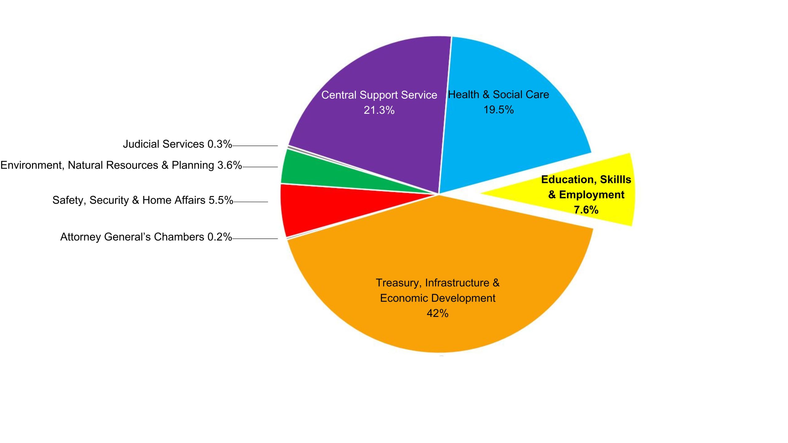 The SHG budget for 2023-2024 allocated £47,072,000 for recurrent and capital expenditure. Of this figure, ESE was allocated £3,585 000. This means that of the six portfolios included in the 2023-2024 Budget Book, ESE received 7.6% of the SHG recurrent budget.
