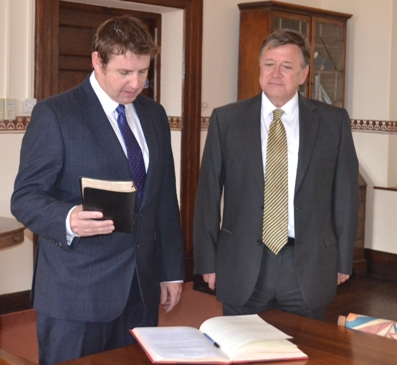 Walter – who is Solicitor General on Ascension Island – took the prescribed oaths for Attorney General before Governor Capes today, Thursday 24 September, in the Governor’s Office at the Castle (photo attached).