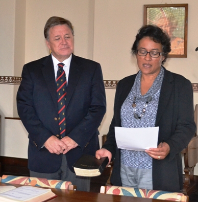 During the period he is off-Island, Assistant Chief Secretary (Support) Gillian Francis will take on the duties of Acting Chief Secretary. Gillian this morning took the prescribed Oaths of Office in the presence of HE Governor Capes at the Castle.