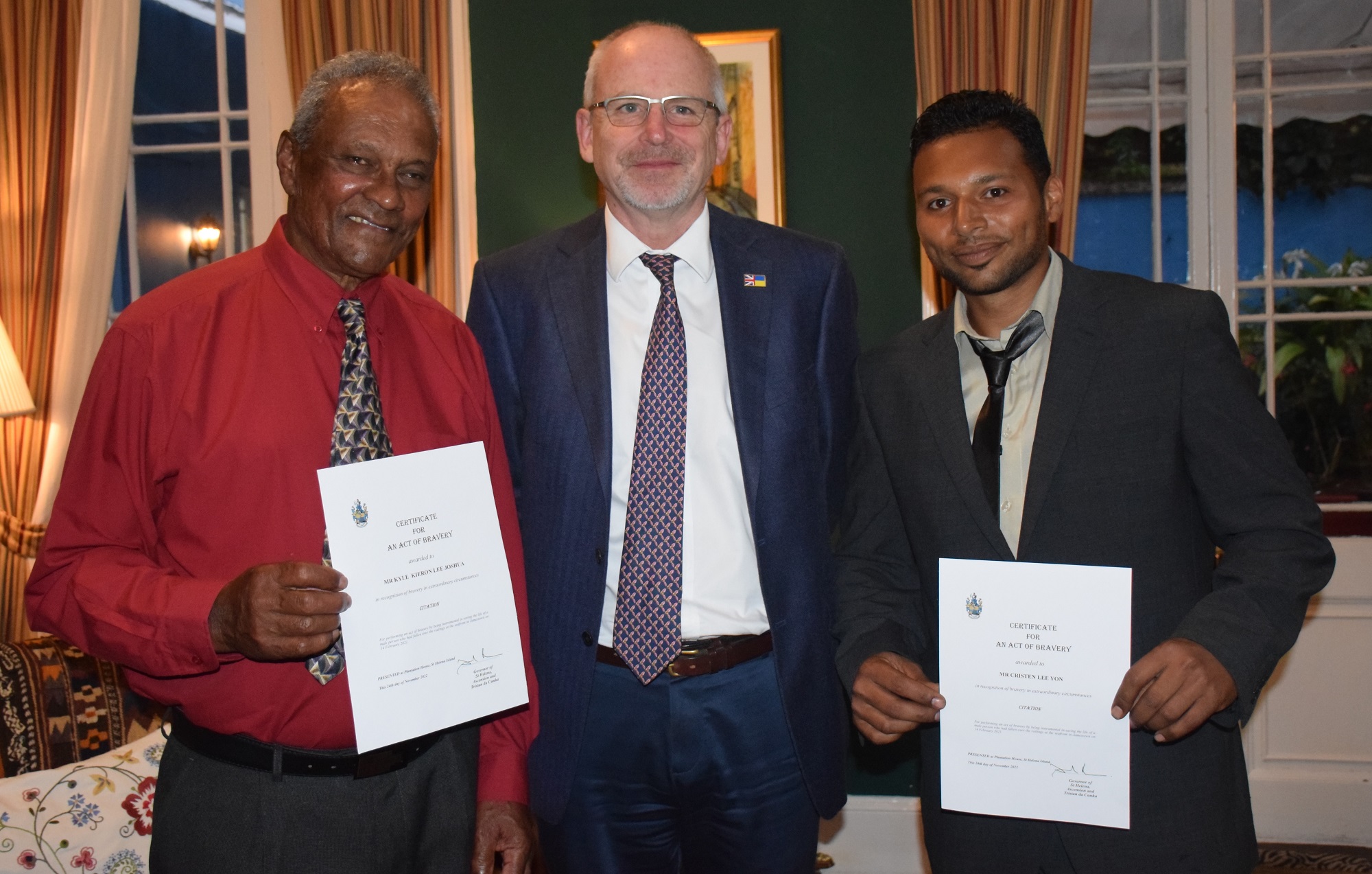 On Thursday 24 November 2022, Act of Bravery Awards were presented to Cristen Yon and Kyle Joshua in a reception at Plantation House. As Kyle Joshua is currently off-Island, his father Keith (KJ) Joshua received the award on his behalf.