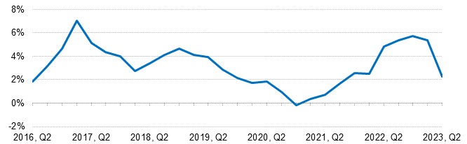 Chart 1. Annual inflation rate, Q2 2016 to Q2 2023