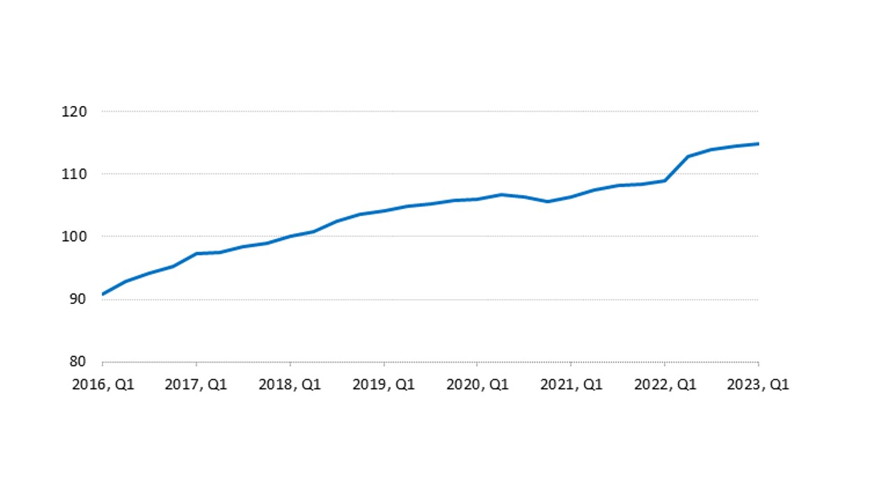 The annual price inflation rate of 2.9% is a decrease in the rate from last quarter (Q2 2019), when the annual price inflation rate was measured at 4.0% (see Chart 1). The quarterly price inflation rate (i.e. Q3 2019 compared to Q2 2019) of 0.4% is also a decrease compared to last quarter, when it was 0.7%