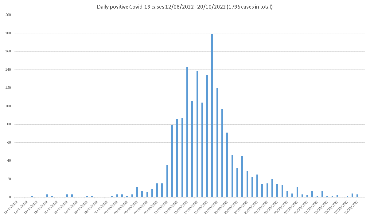 The St Helena Health Services Directorate would like to inform the public that 12 positive cases of COVID-19 were identified/reported within the community during the period Friday 14 to Thursday 20 October 2022.