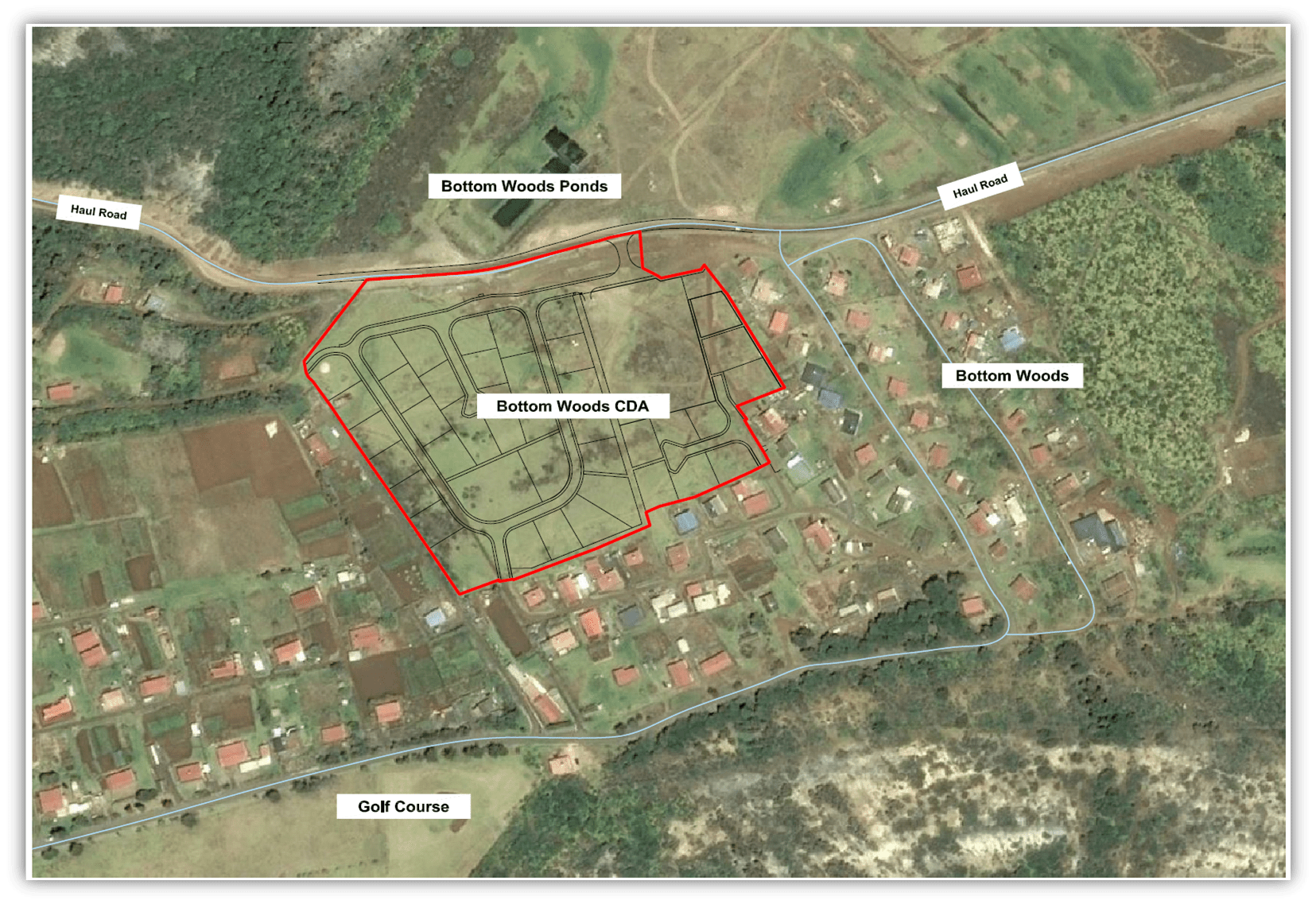 Works have commenced on the Comprehensive Development Area (CDA) at Bottom Woods West. This work includes site clearance and marking out of the road infrastructure.