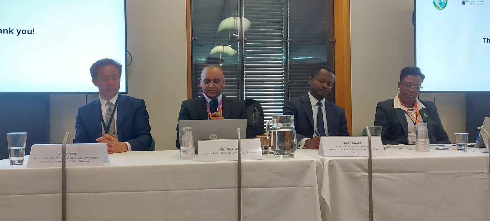 The delegation also comprises Mark Yon and Bramwell Bushuru Lumukwana, Chair and Vice Chair of the St Helena Public Accounts Committee, Vimbai Chikwenhere, Deputy Chief Auditor, and Blessing Gurure, Head of Internal Audit.