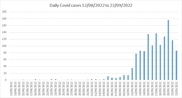 The St Helena Health Services Directorate would like to inform the public that 849 positive cases of COVID-19 were identified within the community during the period Friday, 16 September, to Thursday, 22 September 2022.