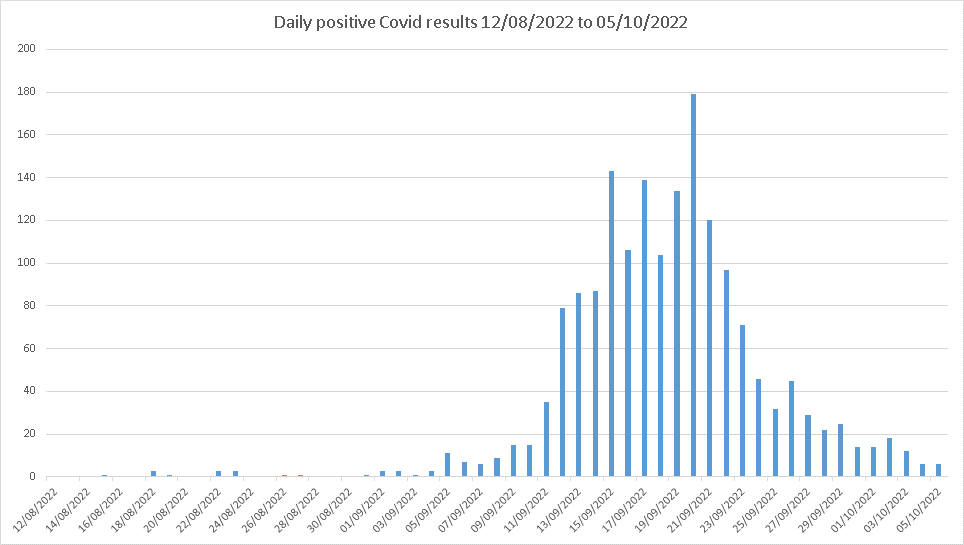 The St Helena Health Services Directorate would like to inform the public that 92 positive cases of COVID-19 were identified/reported within the community during the period Friday, 30 September, to Thursday, 6 October 2022.