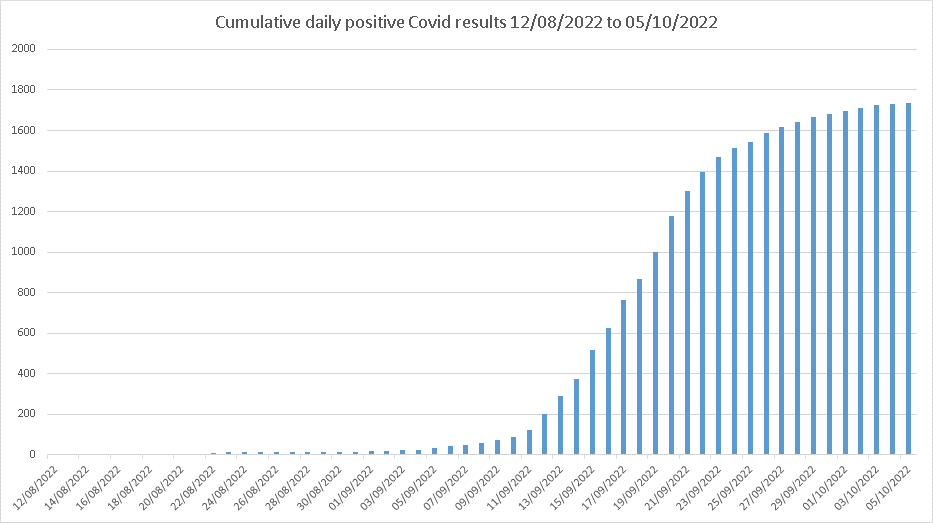 A total of 1748 positive cases have been identified since the lifting of quarantine on Monday, 8 August 2022.