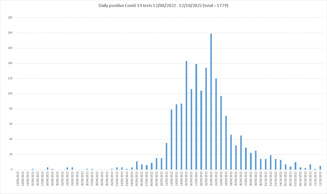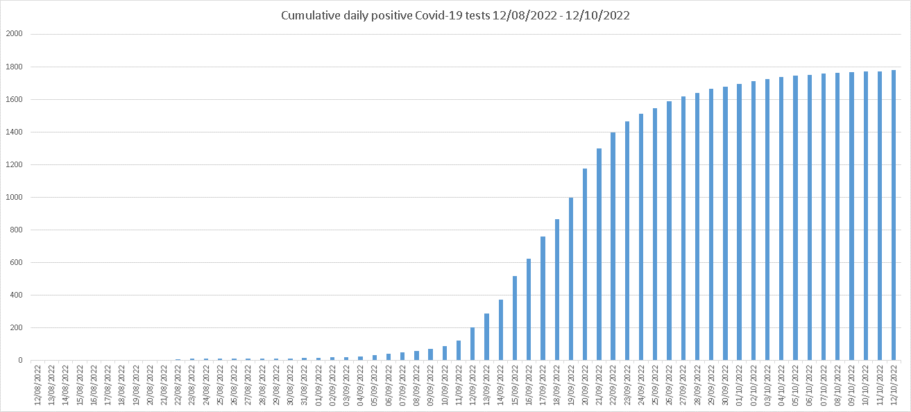 A total of 1782 positive cases have been identified since the lifting of quarantine on Monday, 8 August 2022.
