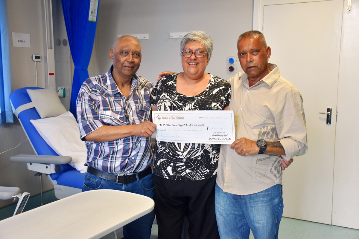A cheque totalling £1700 was presented to members of the Cancer Support & Awareness Charity by Garry Yon, Anthony Clingham and Mandy Constantine on Friday, 13 November 2020. The presentation took place at the General Hospital’s Oncology Unit.
