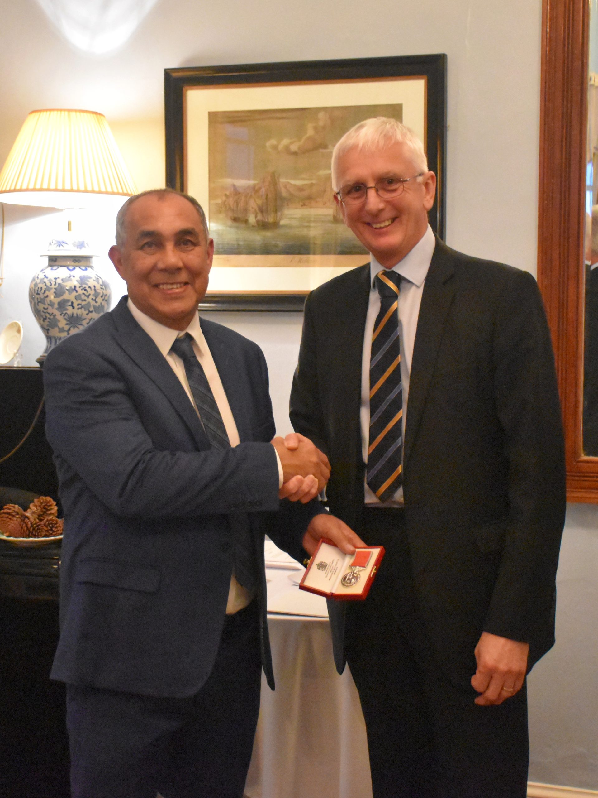 During the reception, the Governor awarded Mr Geoffrey Benjamin a British Empire Medal (BEM). Geoffrey was awarded the BEM for his contribution to the development of biomedical testing services on-Island, which are a crucial part of the Island’s COVID-19 protection measures.