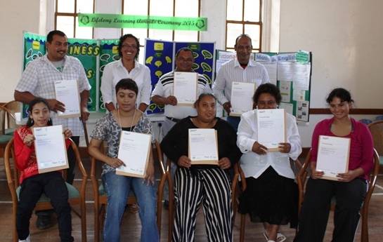An awards ceremony was held at the Jamestown Community Centre on Tuesday, 20 January 2015, organised by Lifelong Learning Services (previously AVES). Attending the ceremony was Director of Education & Employment, Colin Moore, the Education and Employment Committee, awardees and invited guests.