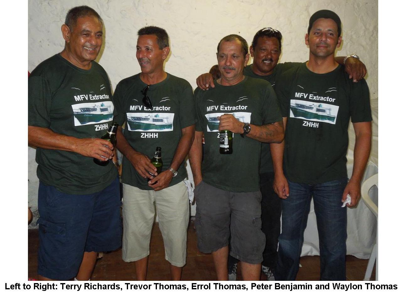 Lead Skipper, Trevor (Otto) Thomas, and crew members Waylon Thomas, Peter Benjamin, Errol Thomas, and Terry Richards, were presented with a St Helena Flag for the MFV Extractor by Cllr Lawson Henry, Chairman of the Economic Development Committee.