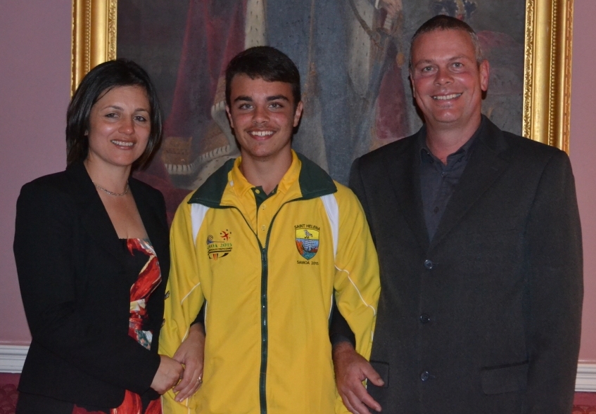A reception was hosted by HE the Governor and Mrs Capes last night at Plantation House, to welcome back St Helena’s Jersey Island Games participants and to wish farewell and good luck to the Samoa 2015 Commonwealth Youth Games team (photos attached). The Governor acknowledged that St Helena strives to take part in sporting events internationally, never deterred by the challenge of travel time and cost to attend such sporting events. To illustrate that he noted that the Samoa team will travel through South Africa, Australia, New Zealand, the UK, the United States and Ascension Island.