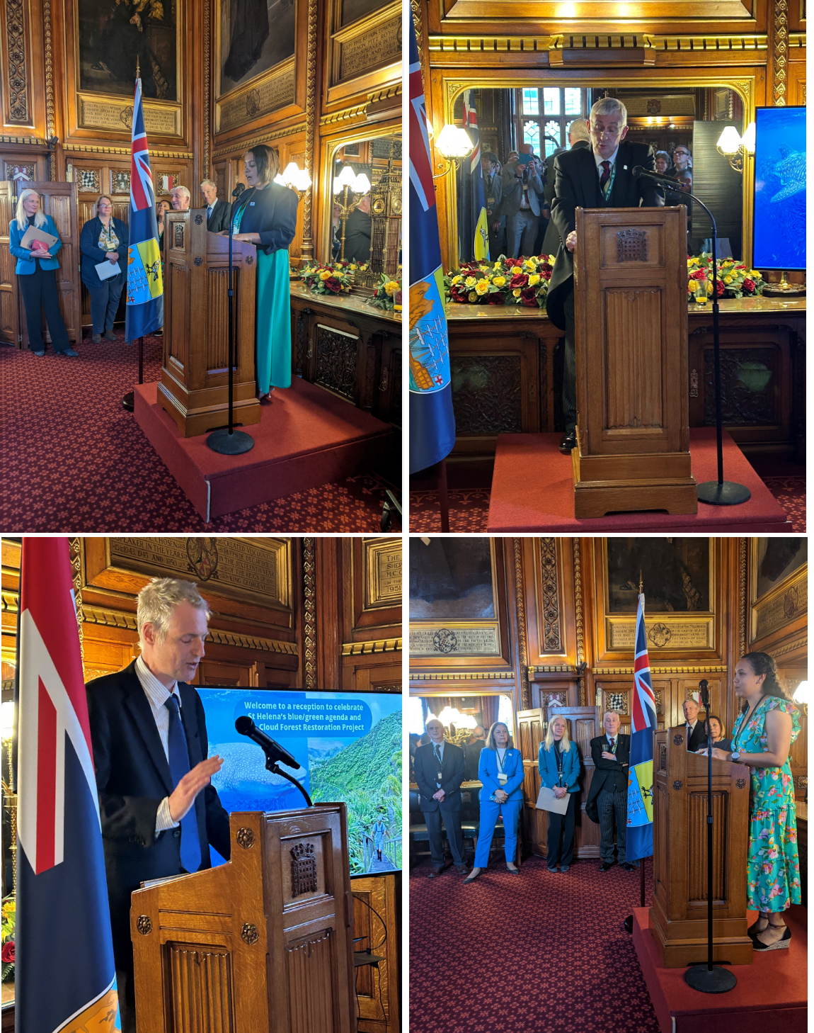 During the event speeches were made by the Speaker of the House of Commons Sir Lindsay Hoyle, the Overseas Territories Minister for the UK Government Lord Goldsmith, Beccy Speight the CEO and Shayla Ellick of the Royal Society for the Protection of Birds (RSPB) and the Chair of the St Helena All Party Parliamentary Group Amanda Milling MP.