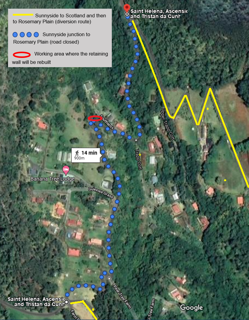 The Highways Authority has given approval for the road from the bottom junction of Sunnyside to Rosemary Plain to be closed between 9am and 3pm on Monday, 1, Tuesday, 2, and Wednesday, 3November 2021. This closure is to allow the Roads Section to rebuild the retaining wall on this road.