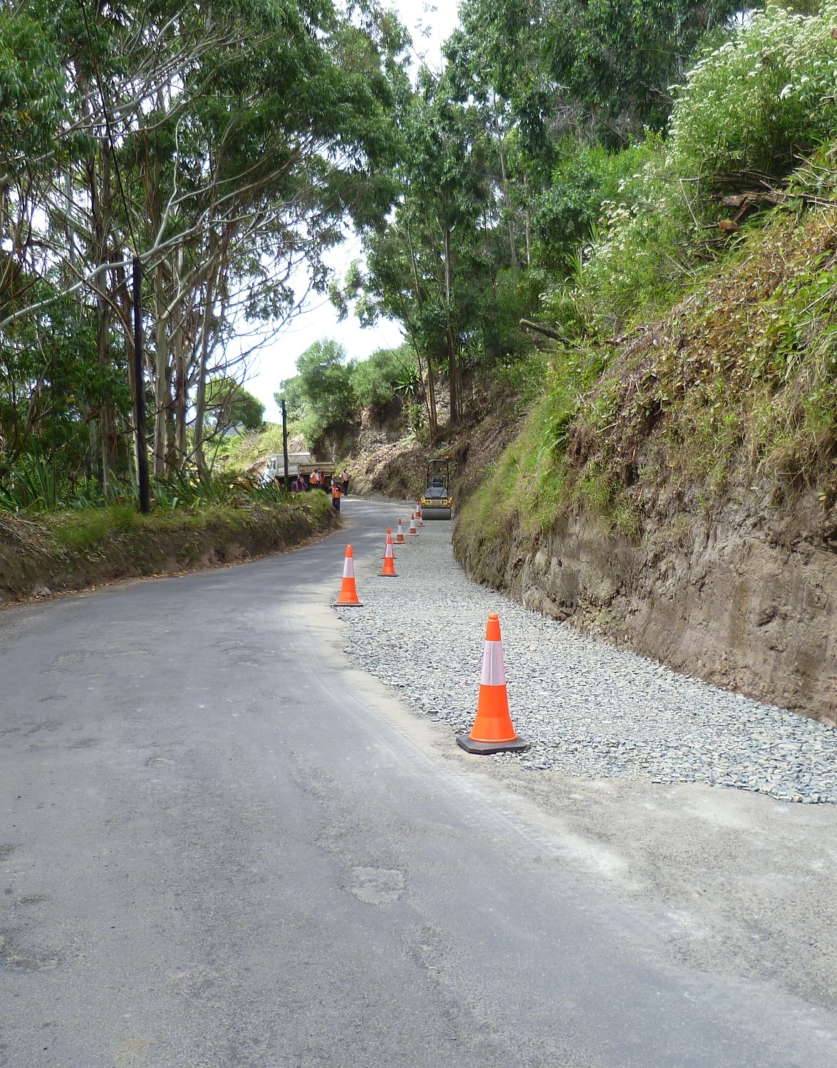 The edges of the road are being reinstated where necessary, which involves bringing the edges that have dropped up to the level of the rest of the road and resurfacing the repaired edges. Under-land drains are also being upgraded – the existing drains are not able to cope effectively with storm water and this causes damage to the road surface. Addressing this problem now will help prolong the life of the road.