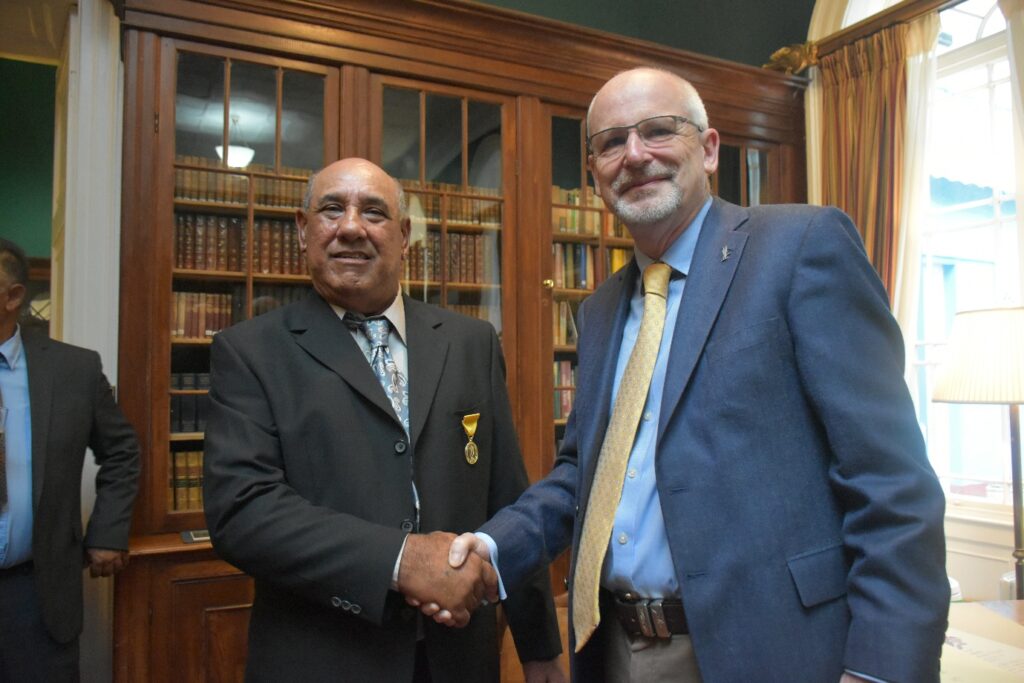 The St Helena Government (SHG) is pleased to announce that the St Helena Badge of Honour has been officially presented to brothers Anthony ‘Futcher’ Henry and Doran Henry for their lifelong, exceptional service to the island’s maritime environment and sea rescue.