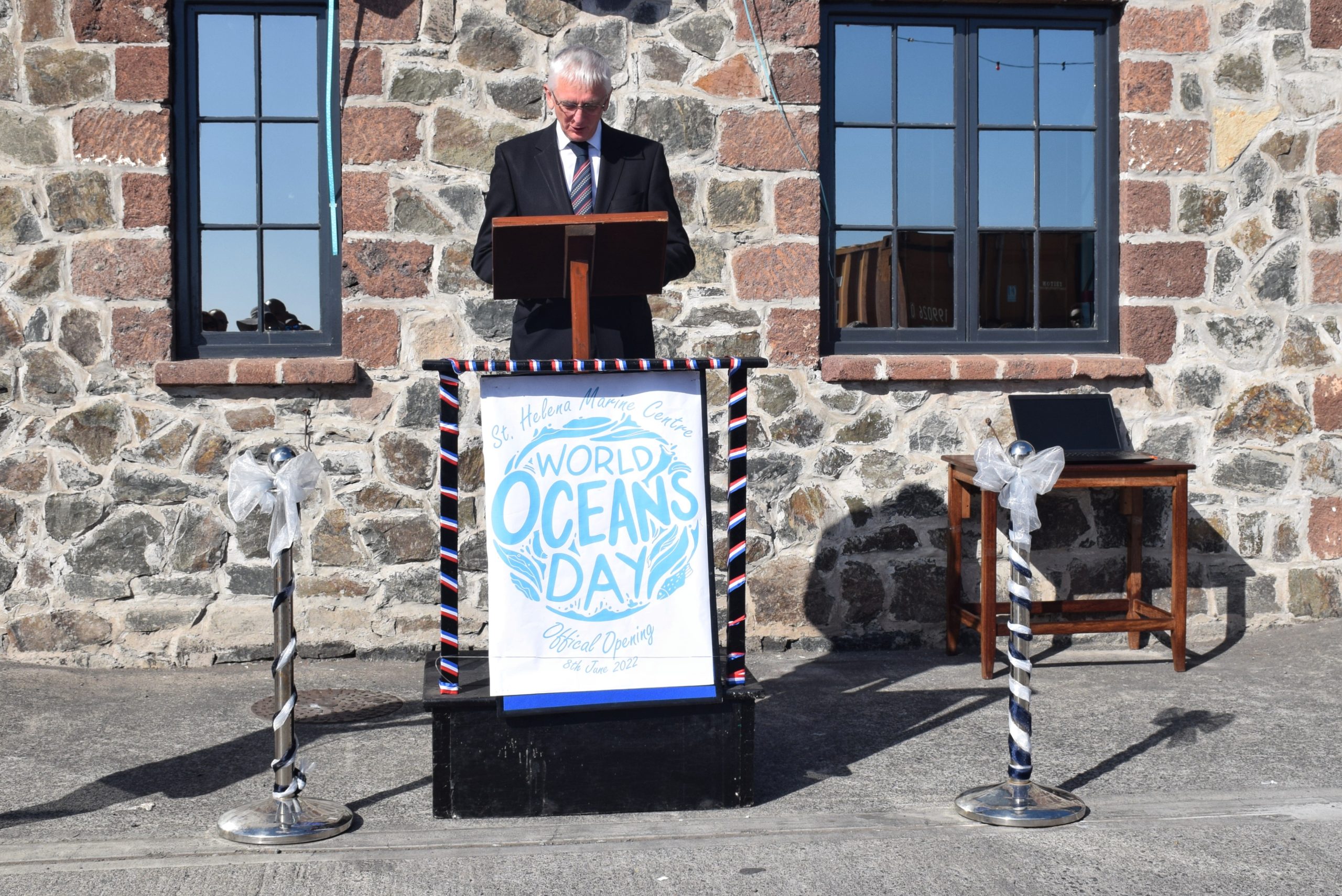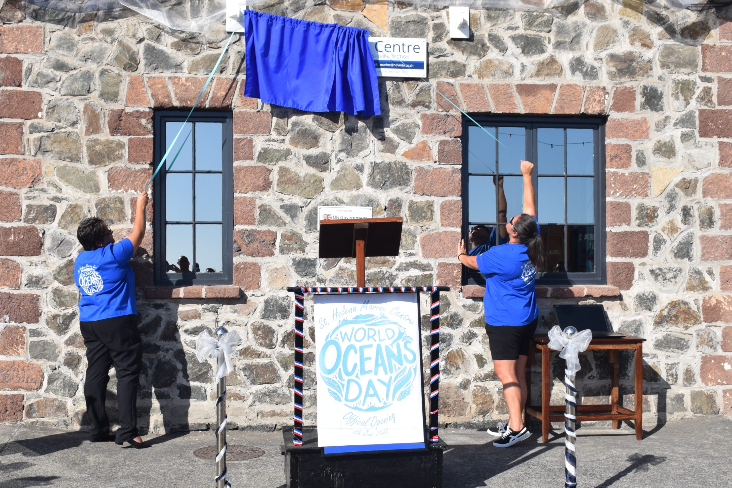 The new St Helena Marine Centre at the Wharf in Jamestown was officially opened with an unveiling of the marine Centre signboard and a ribbon cutting ceremony on World Oceans Day 2022 (Wednesday, 8 June).