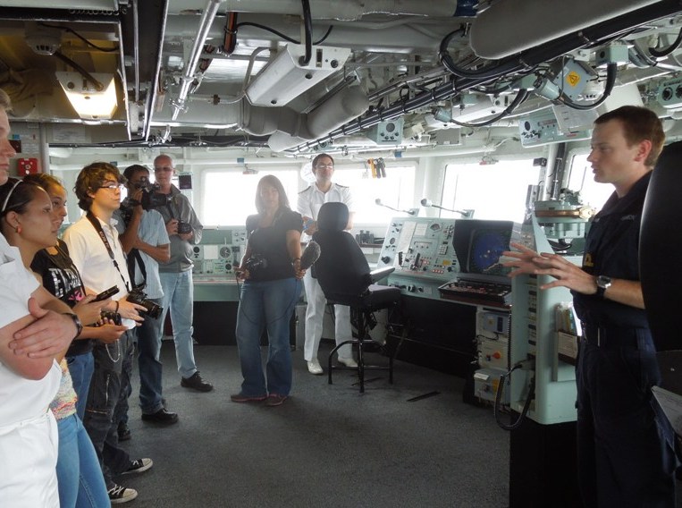 HMS Lancaster continued its hospitality on Wednesday by hosting local media for an on board tour, followed by interviews with Lieutenant Commander James Thomson, Second In Command of HMS Lancaster. Also on Wednesday Primary School children and a French party were hosted on the ship.