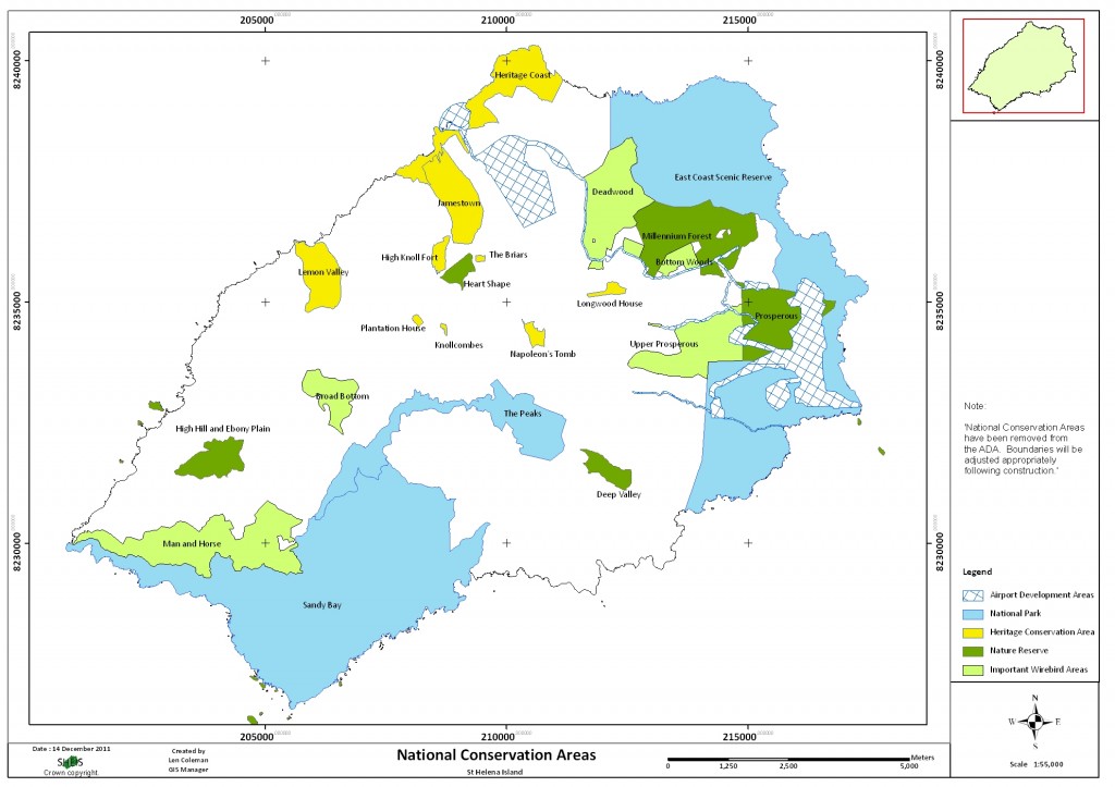 St Helena has designated 23 National Conservation Areas (NCAs) under the Land Development Control Plan. The NCAs are split into four types: National Parks (3); Nature Reserves (6); Important Wirebird Areas (5) and Historic Conservation Areas (9). The Environmental Management Division (EMD) will be leading the development of plans to guide the management of the 14 ‘natural’ NCAs i.e the National Parks, Nature Reserves and Important Wirebird Areas.