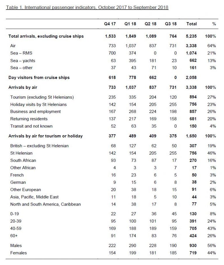 The focus of this Statistical Bulletin is arrivals and departures to and from St Helena, especially by air; St Helena’s first regular scheduled air service began more than a year ago on October 14, 2017.