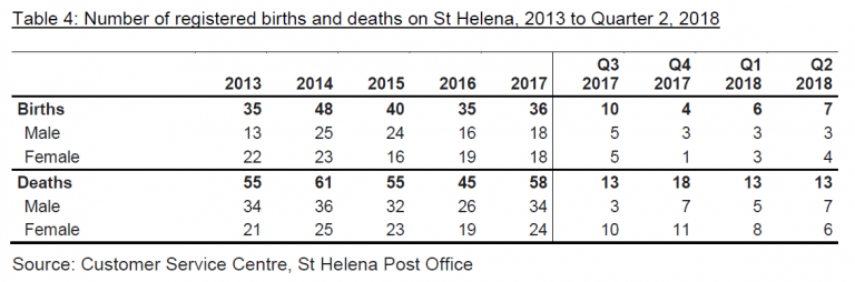In the second quarter of 2018, there were a total of seven births and 13 deaths registered on St Helena; this is almost the same as the previous quarter, when there were also 13 deaths, but six births.