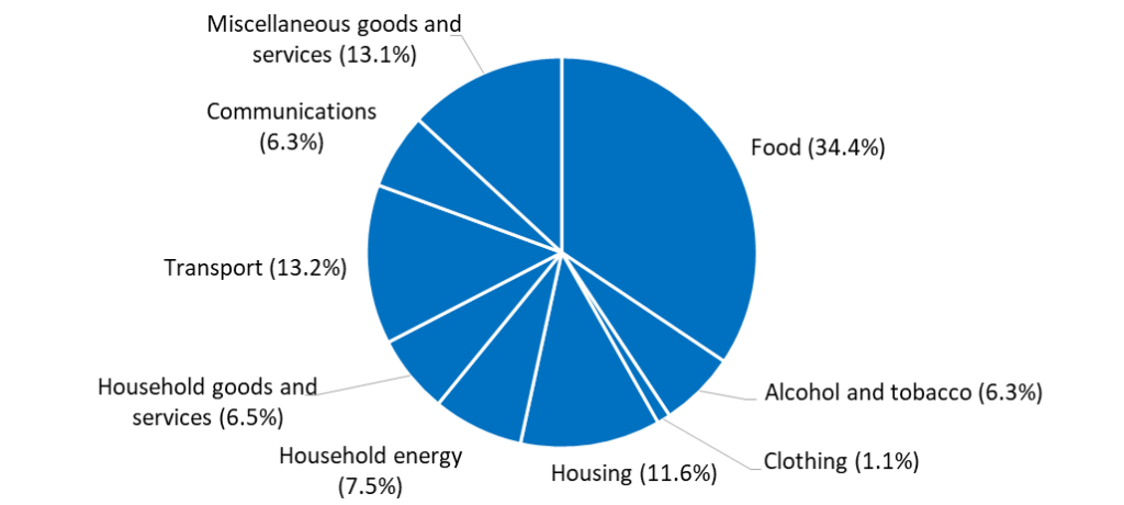Composition of average household weekly expenditure (Q1 2018 RPI ‘Shopping Basket’)