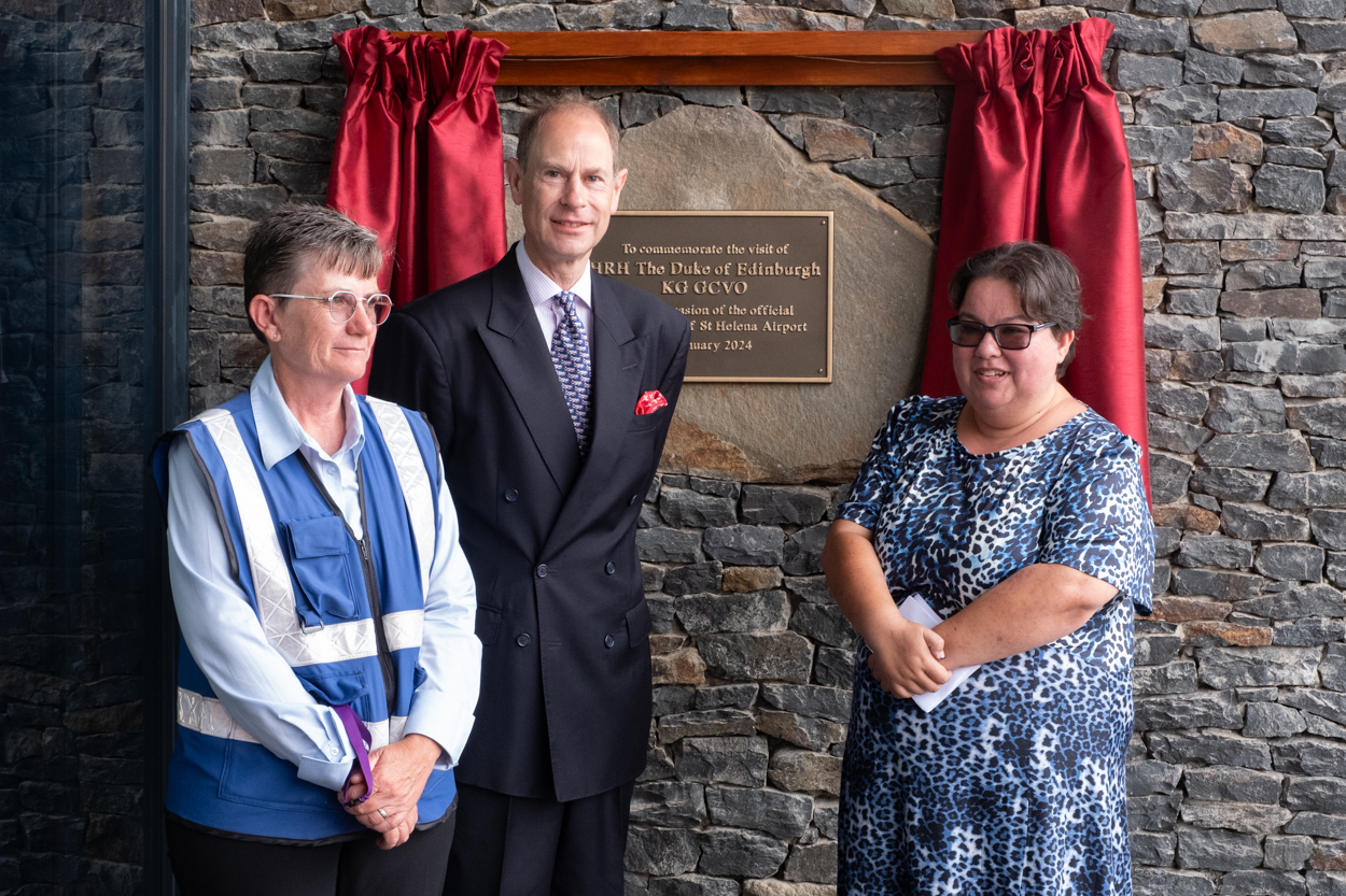 Before his departure HRH officially opened the St Helena International Airport in a public ceremony. The Duke commemorated the special event by unveiling a plaque marking the official opening of the airport.