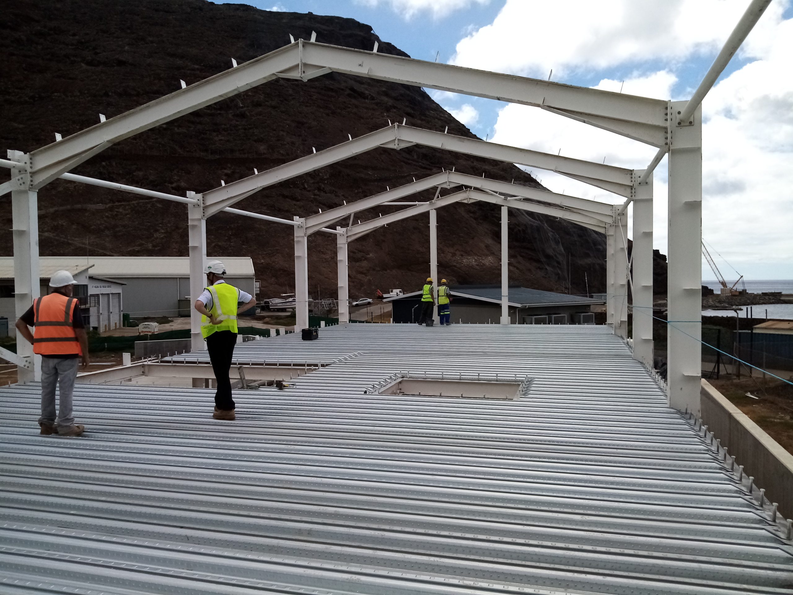 Works are progressing well on construction of the Port Control, Customs and Biosecurity (PCB) Main Container Yard, alongside the erection of the two new steel framed buildings in Lower Rupert’s.