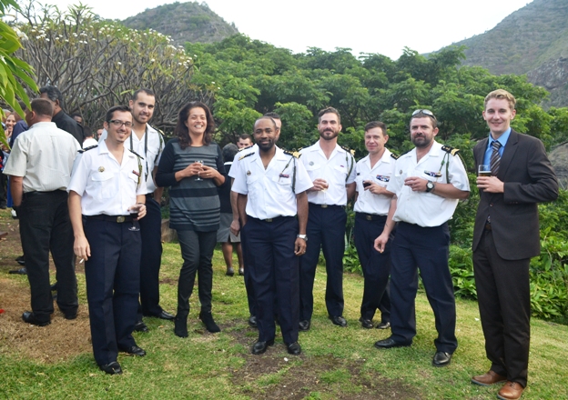 Following the ceremony, members of the French Navy visited Napoleon’s House where they were given a tour, before attending a reception hosted by the Acting Governor and Mrs Burns at the Briars Pavilion.