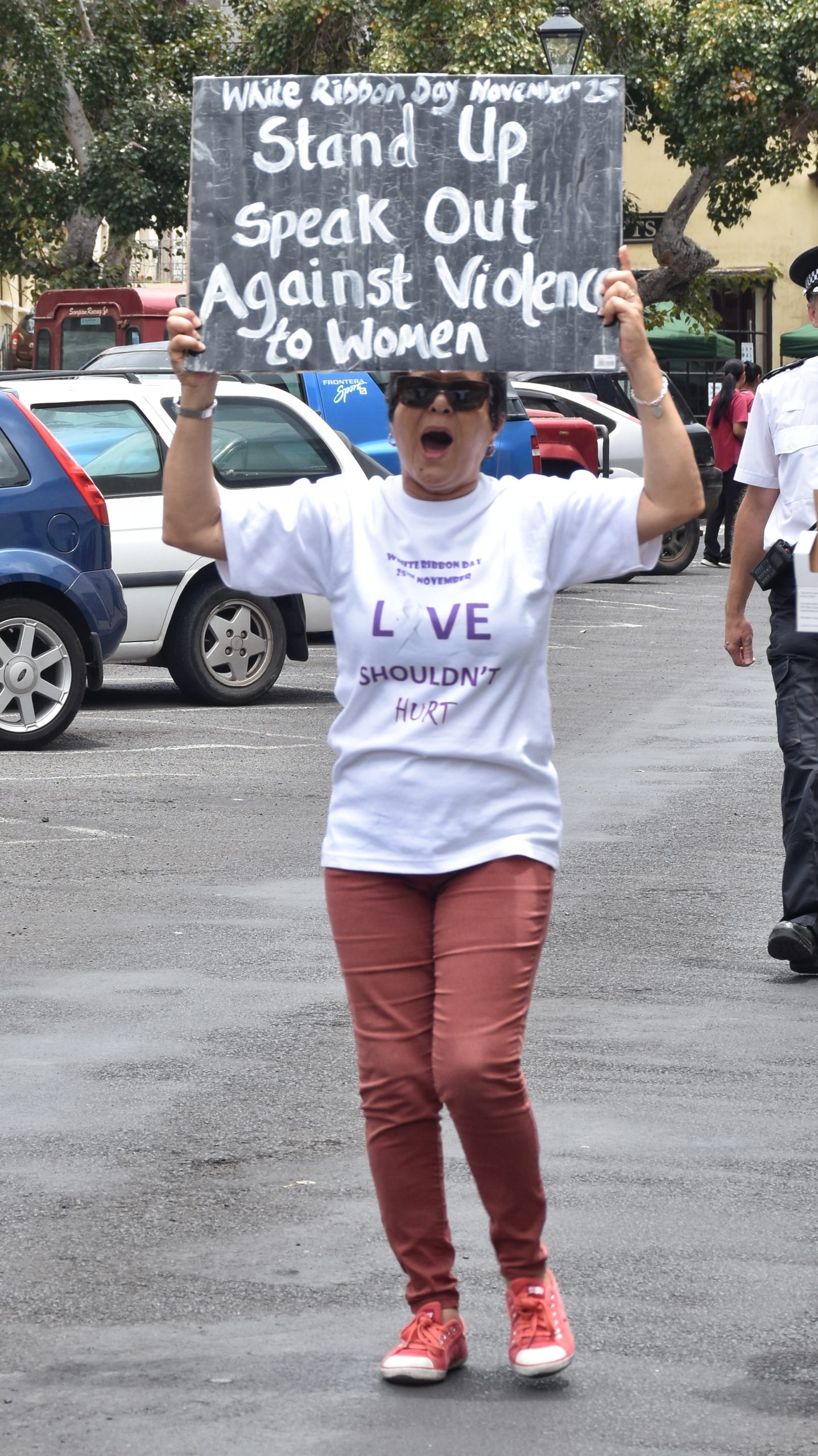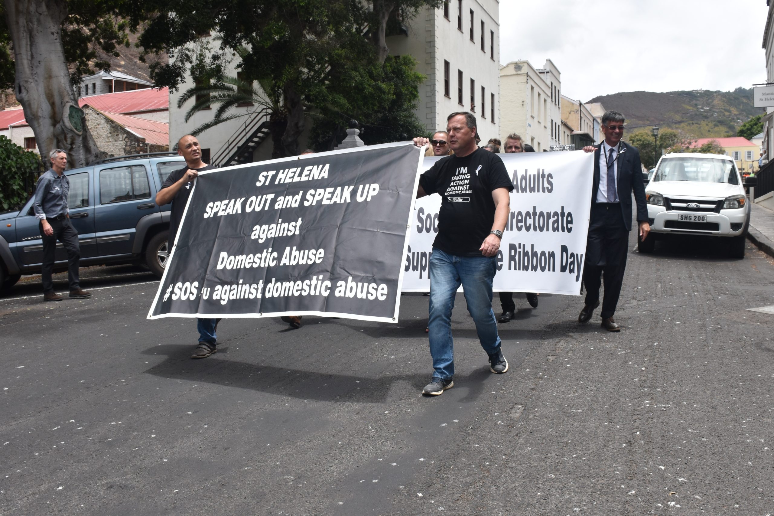 On Thursday, 25 November, (International Day for the Elimination of Violence against Women), Elected Members, St Helena Government Officials, and members of the public participated in the White Ribbon Parade through Jamestown. During the march, participants chanted ‘say no to domestic violence’ to show disapproval against domestic abuse towards women and girls and carried banners displaying anti-domestic violence messages.