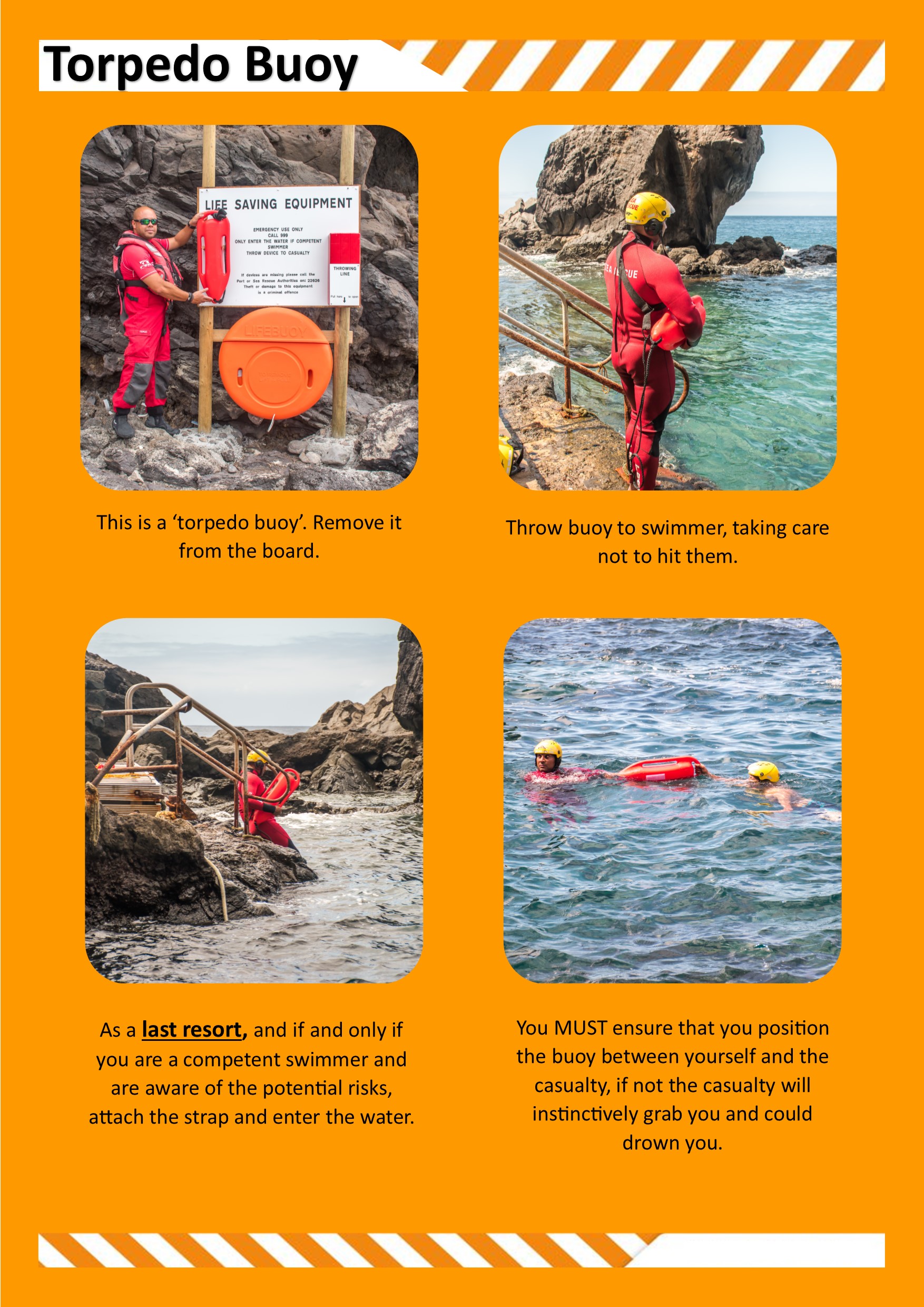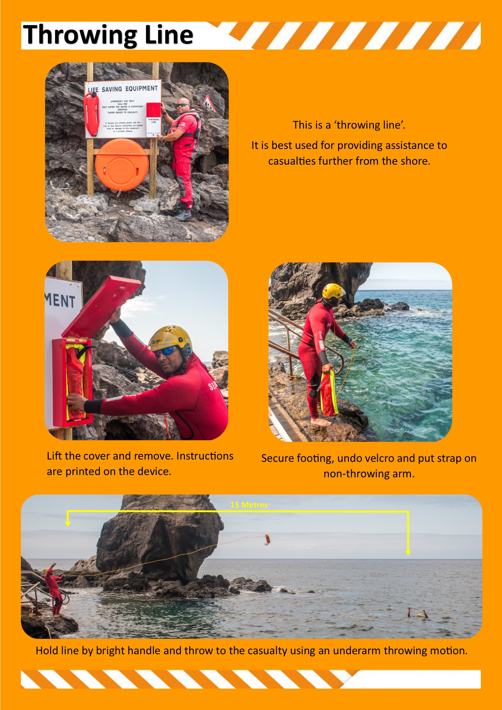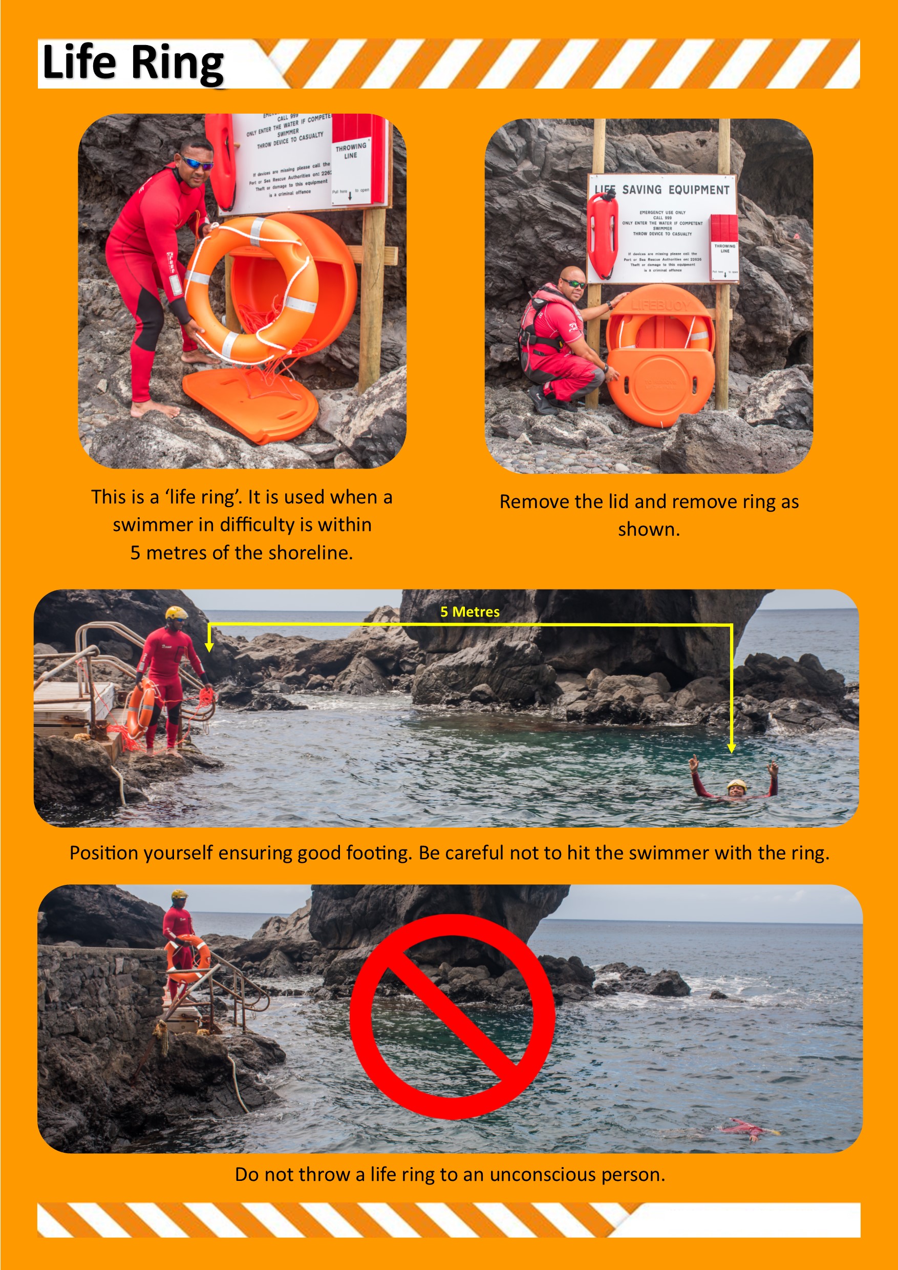 Lifebuoys are located at the Jamestown Wharf, Rupert’s Jetty and beach, and Lemon Valley. This is vital survival equipment and should be treated with respect, so should not be removed unless there is an emergency. Please report any defects to the Sea Rescue Service or Port Control. Instructions on how to use this equipment can be found here or below: